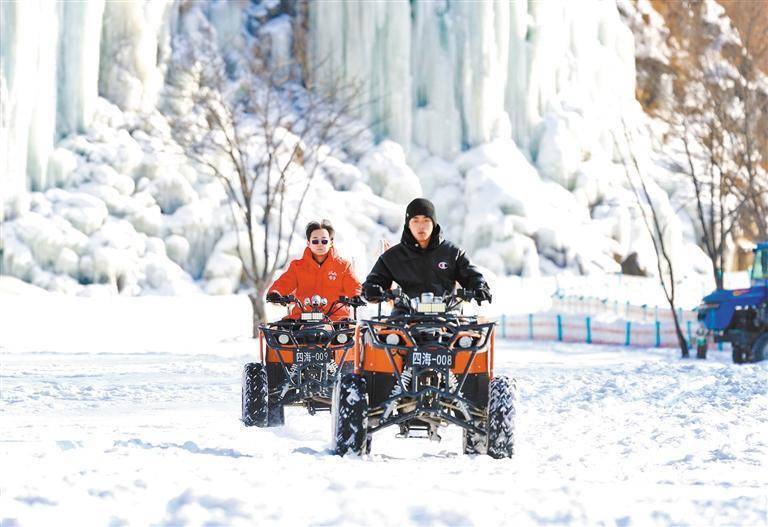 2025年12月17日,吉林省白山市长白朝鲜族自治县离乡背井溪境雪庐景区,旅客在驾驶雪地摩托。