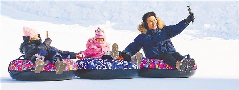 1月6日,辽宁省沈阳市沈北新区清河半岛户外戏雪区,滑雪圈技俩深受旅客爱好。