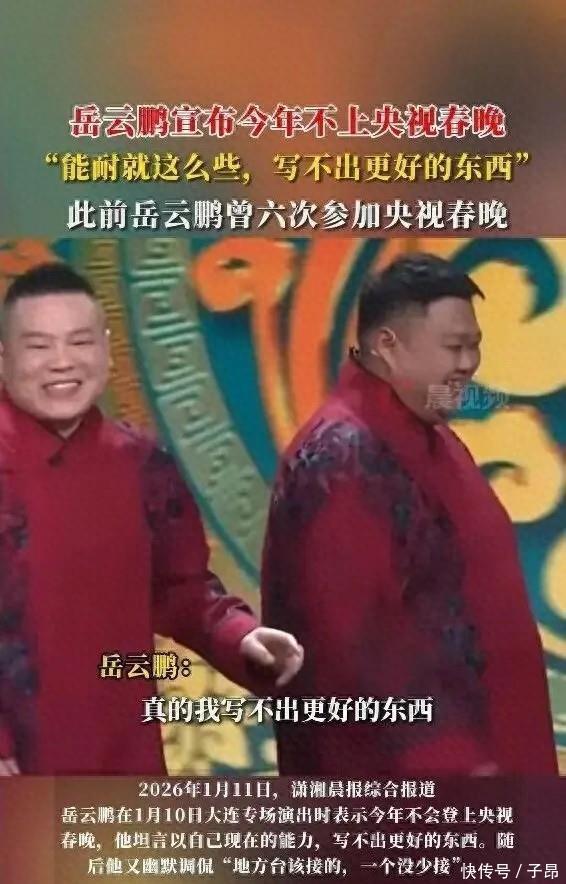 “以我我方当今的智商,写不出更好的东西,是以本年就不上春晚了。” 这话若是别的明星说出来,你可能以为是客套,是局势话。但说这话的东谈主是岳云鹏,是在我方相声专场的舞台上,面对几千名不雅众,用他那标记性的、带着点河南口音的敦厚口吻说出来的。你忽然就以为,他好像是庄重的。1月10日在大连,这位也曾好几年在央视春晚除夜夜给环球带来欢笑的“小岳岳”,亲口给我方2026年的春晚之旅画上了一个句号。原理通俗径直,致使有点“笨”:智商不够,新活没写出来,是以不上了。 说完这句有点“沉寂”的大真话,他立马又找补总结,用他特有的幽默簸弄谈:“不外场地台该接的,一个没少接!” 这一张一弛,一退一进,活脱脱便是岳云鹏当今的形势:在稠密的名声和期待眼前,他有贫乏的清亮和自我怀疑;但在我方认定的路上开云kaiyun官方网站,他又带着一股“非要唱”的轴劲儿。
