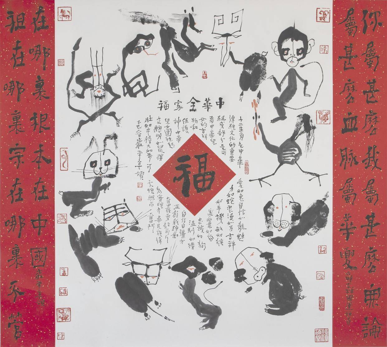 “横行不横暴”:“蟹派”艺术与生肖文化的翻新抒发严学章被誉为念念想型翻新艺术家,他创建的“蟹派”艺术以“横行不横暴”为学术理念,在现代艺苑独树一帜。其艺术体系以生肖文化为创作母体,构建了“以学术性表面著手脚念念想复旧,以原创性系列作品为艺术复旧”的竣工框架。他的代表作《中华全家福》将十二生肖集结一堂,传递出“不论走多远,根齐在中国”的寓意。