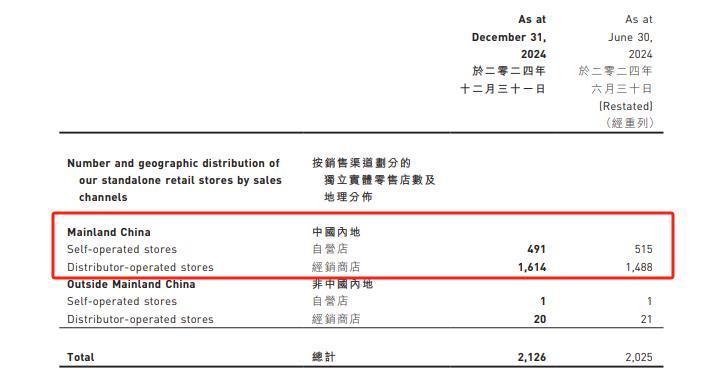 更深层的矛盾在于渠说念变革——自营门店收入占比从40.2%降至35.4%,经销店占比教育至45.5%。尽管经销形态能快速膨大,半年净增126家经销店,但低毛利的经销收入株连举座毛利率微降0.1个百分点,且加重了库存压力。